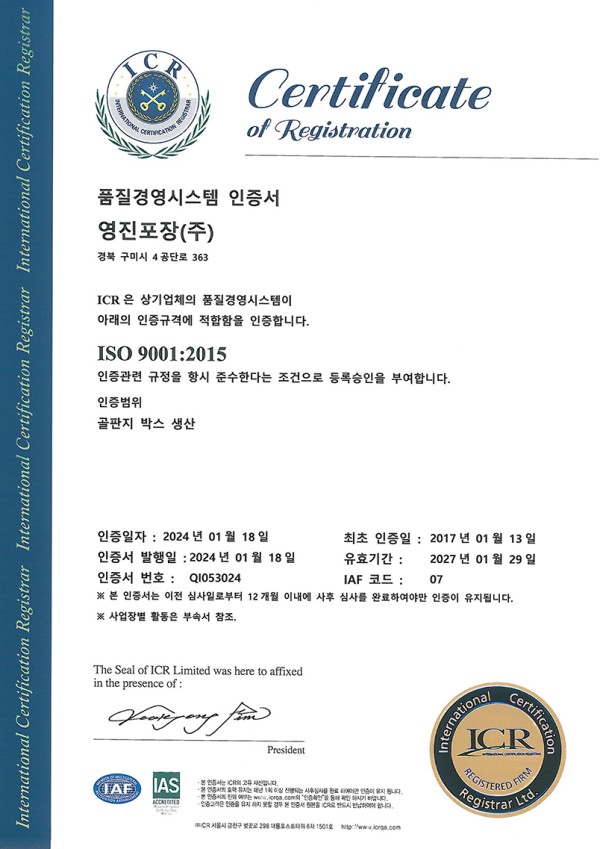 페이지 정보 작성자 최고관리자 댓글 0건 조회 28회 작성일 26-01-15 11:38 목록 ISO 9001 본문 ISO 9001 이전글ISO 14001 26.01.15 다음글접이식 대형포장박스 특허 26.01.15 댓글 0 댓글목록 등록된 댓글이 없습니다.